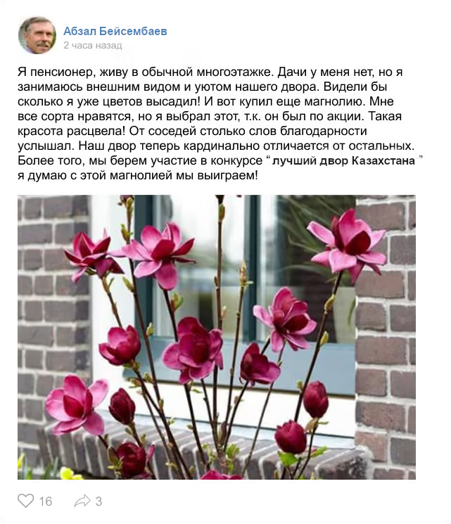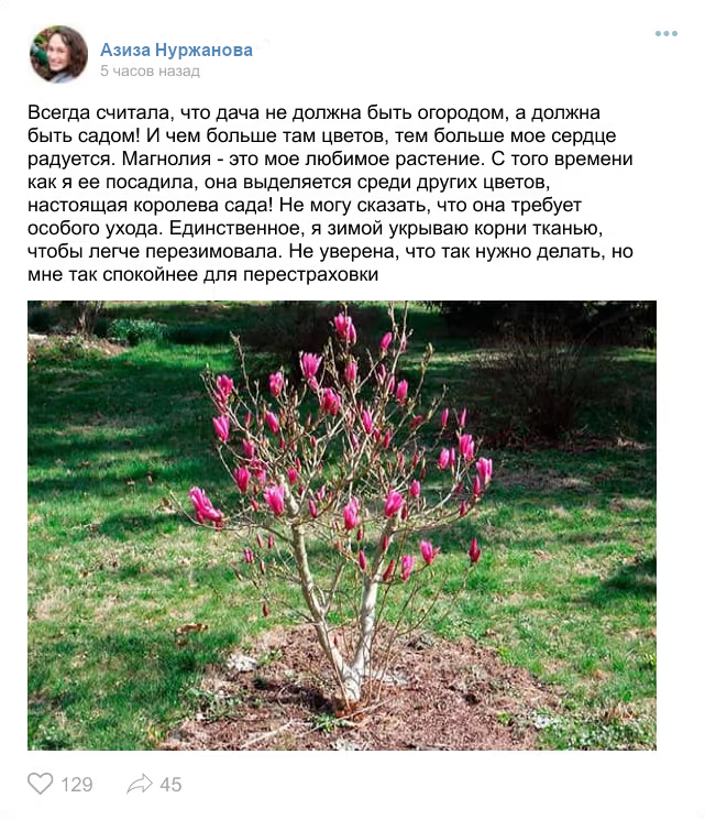 Обратите внимание на то, что эта Магнолия зацветает повторно в конце лета. Это еще одно важное преимущество сорта.